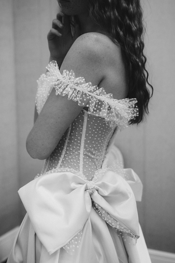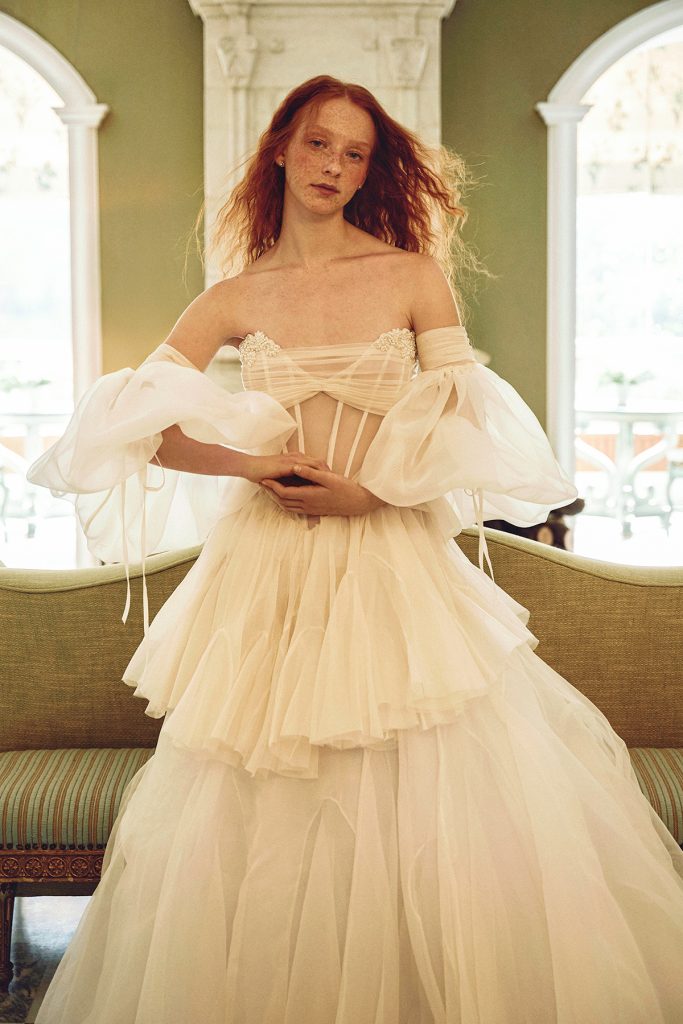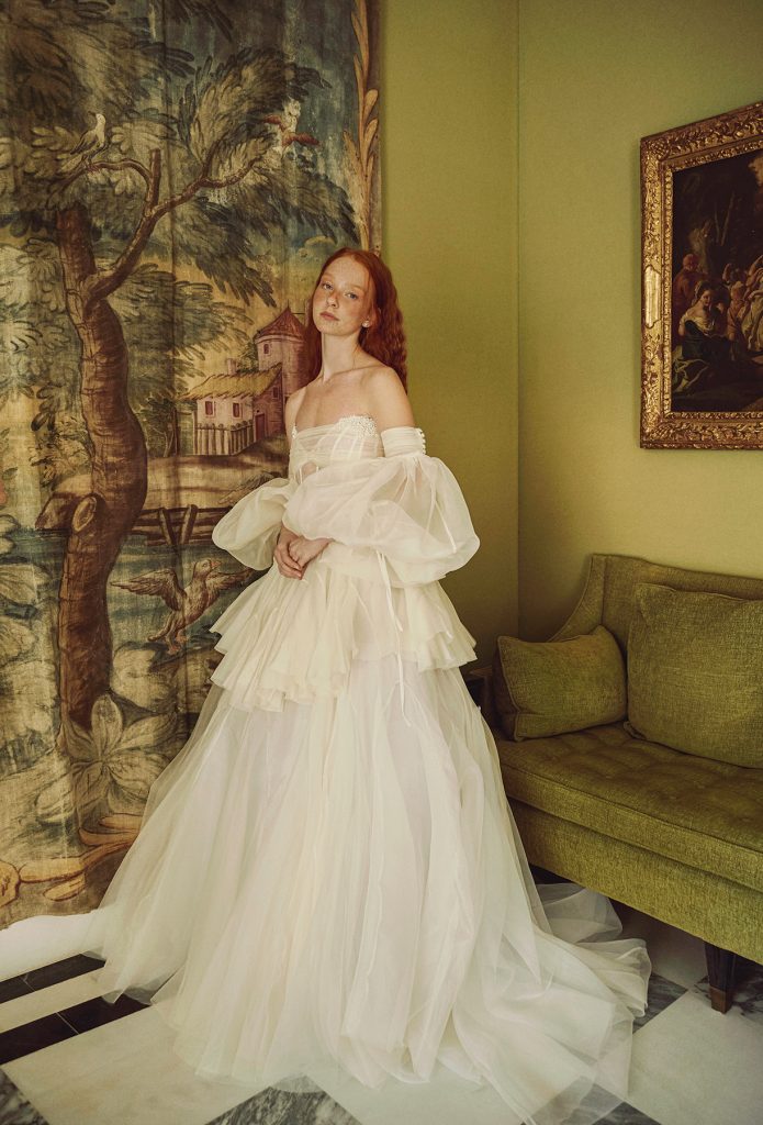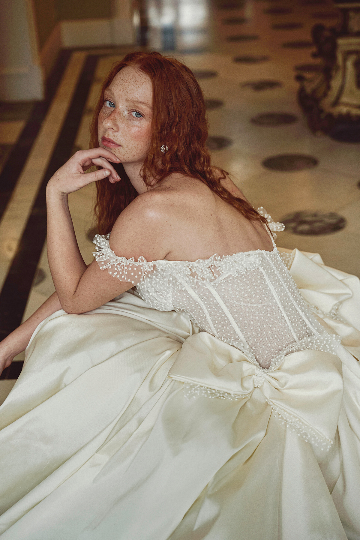 La delicadeza del tul y la organza de seda, que aportan un movimiento ligero y lleno de vida. La estructura elegante del tafetán, que recupera la esencia de la costura de siempre. Sutiles detalles de pedrería, que iluminan el diseño como los recuerdos más especiales.