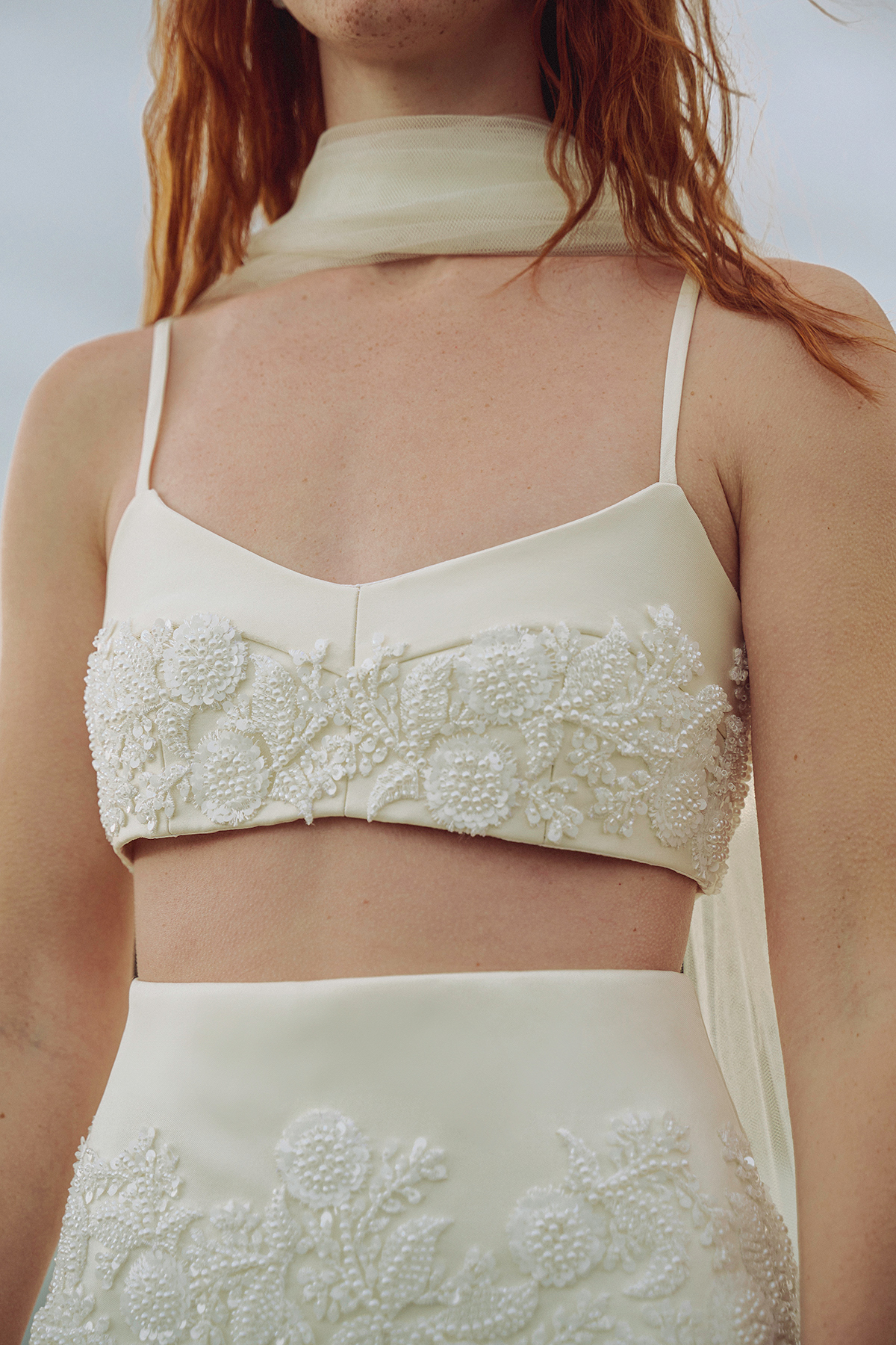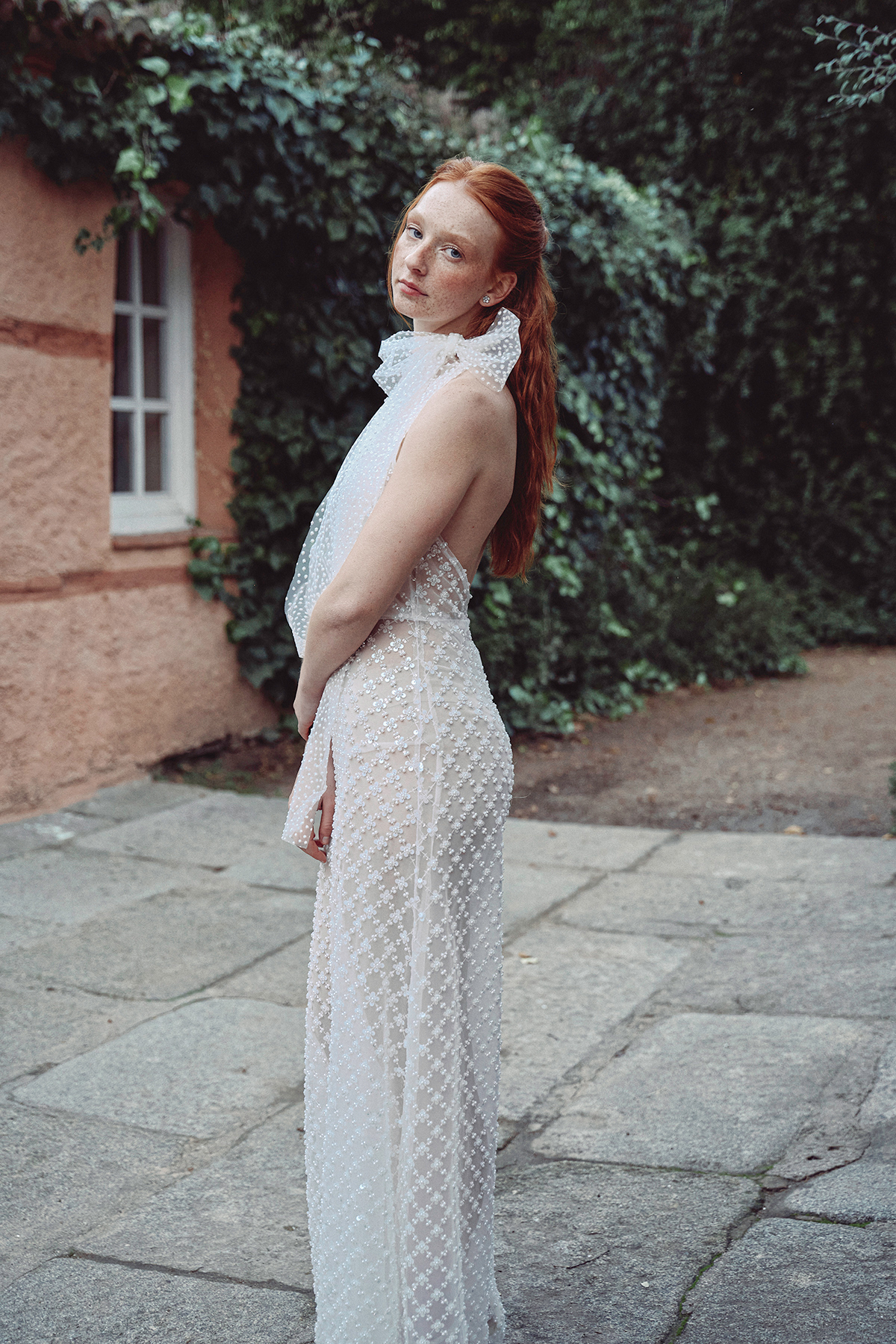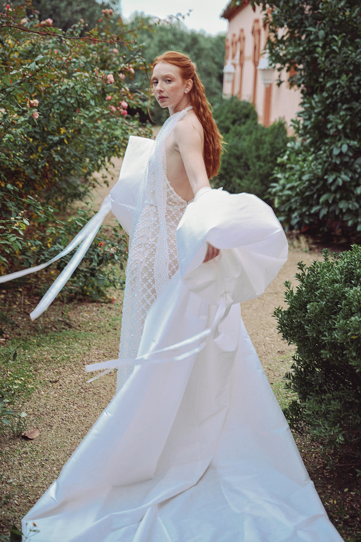 En esta propuesta, he querido reinventar la imagen de la novia clásica desde la cercanía y la emoción. Cada pieza es una invitación a descubrir un romanticismo renovado a través de tejidos que cuentan historias: